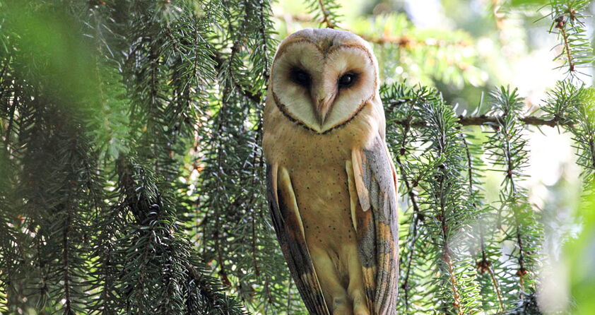 Was bei uns Menschen die Ohrmuschel ist, ist bei allen Eulen der Gesichtsschleier. Beides dient dem Auffangen von Schallwellen, also dem Hören. Der Gesichtsschleier besteht aus besonders harten, trichterförmig angeordneten Federn und verstärkt den Schall sogar noch. So können Eulen auch leise Geräusche, wie zum Beispiel eine Maus, aus großer Entfernung sehr genau orten.