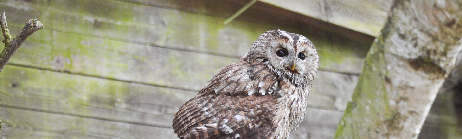 Die gut getarnte Eule mit Knopfaugen